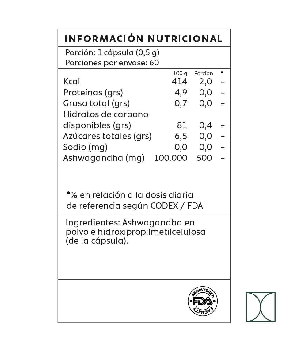 Ashwagandha en polvo: 500 mg