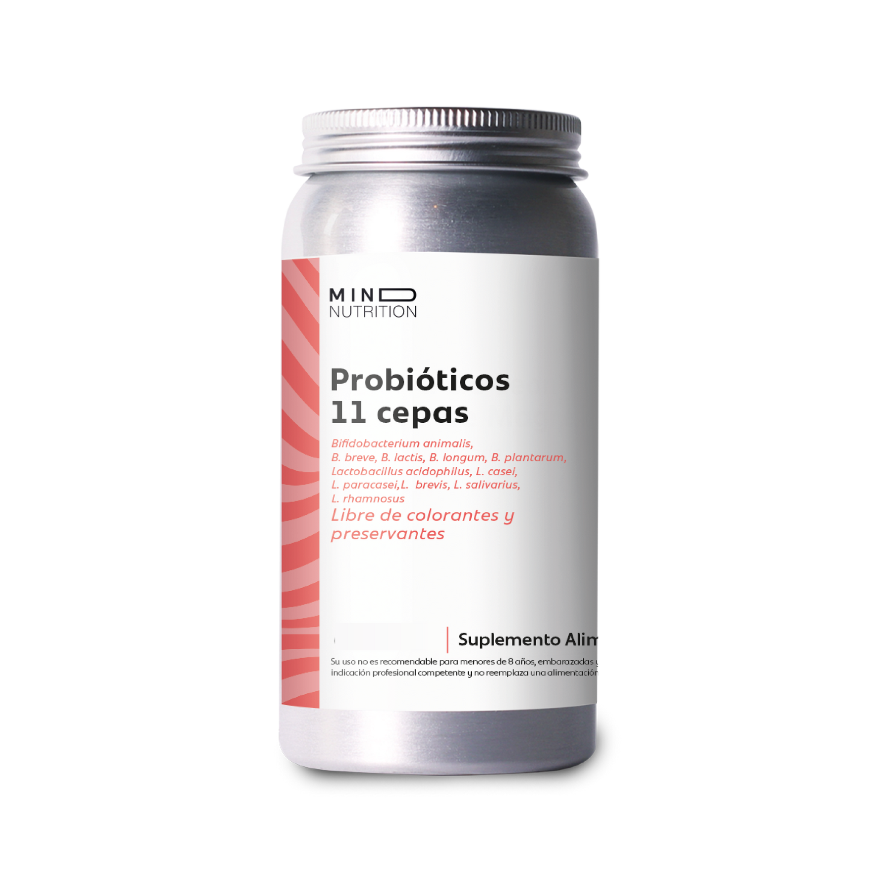 Los Probióticos 11 Cepas de Mind Nutrition aportan una mezcla avanzada de microorganismos seleccionados para acompañar la digestión y el equilibrio natural de la microbiota intestinal.